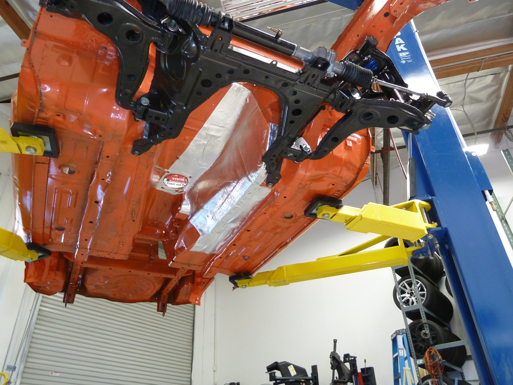 The inside of the tunnel has Thermo-Tec adhesive backed barrier. Image here. Header and exhaust are wrapped to rear axle with DEI 2" header wrap. Car has almost no radiant heat inside. Putting a ton of thermal barriers on the cockpit side of the tunnel is a waste of time. Exhaust will heat all the sheet metal from the firewall to the rear bulkhead to 180° and radiate buckets of heat even if the little heel protector mat is saving your right foot. Keep the tub from getting hot in the first place and you don't need to go crazy in the interior.