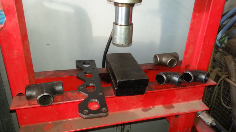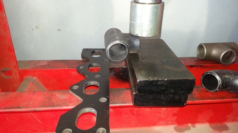 Pull some steampipe up to the press, or alternatively use a hammer on a vice. We are going to crush the entries flatter to match the manifold ports.