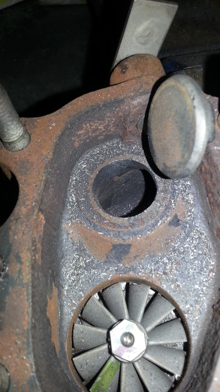 Now the centre housing can be reinstalled with the oil feed on top and the drain facing down as pictured.