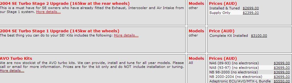 Here is an example from one of Australias leading mx5 specialists websites, showing current turbo kit prices.