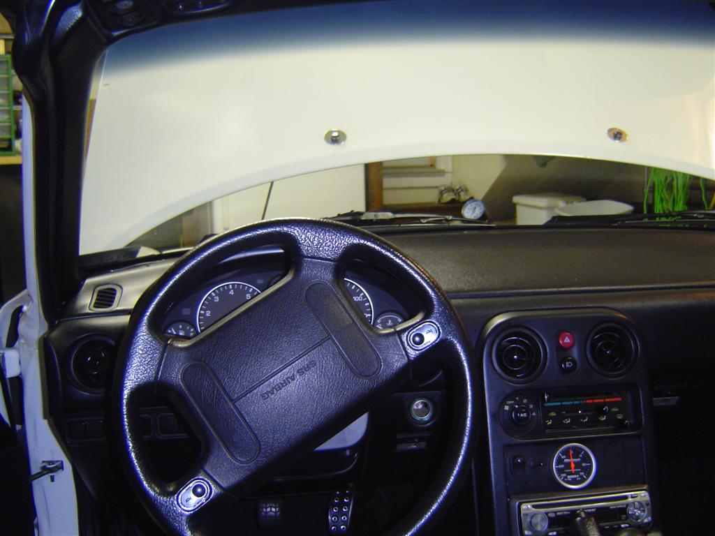 OK, check out what I made! It took me about 3 hours and several different styles of mount. It clears the hood and wiper by about 1/2". It's at a perfect level for viewing in the cockpit. I'm very pleased with myself.