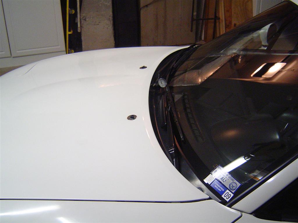 I love my local hydraulic store. Those blokes are awesome. The guy set me up with this awesome little hose setup I'd never seen before. It's this super thin (think cocktail straw) nylon tube that you insert into little press fittings... one for the back of the gauge and one for the T-fitting on my feed line. You just push the tube into the connector, give a tug back out, and it seats in place. To get the tube out, you just push the connector together and the tube comes out. AWESOME! Dude said it would hold 250psi. I'm thinking about a permanent mount out there... just gotta deconflict from the wiper-arms.