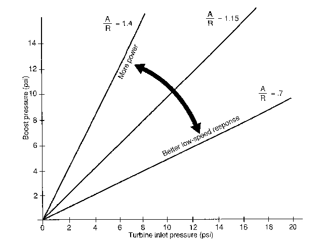 this is why; larger a/rs make more power & you need a larger turbine wheel exducer diameter to drive a compressor at various air flow rates.