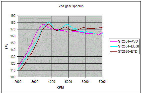 So I have a proposition based on Paul's comment regarding pulls starting at low RPMs not reflecting a real-world pull. These tests are more a measure of at what RPM a turbo begins building boost at. And the trend as expected shows that in general that smaller turbos build boost at lower RPMs.