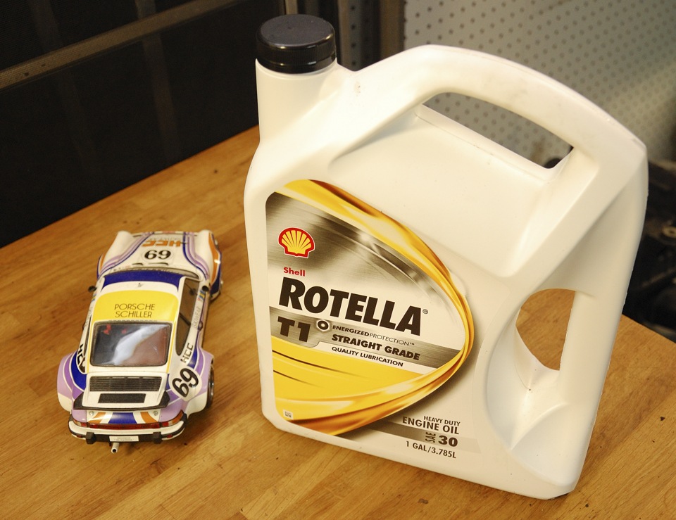 Rotella T1 SAE30 (straight-grade) for initial fill, start and drain (to clean up all the crap after assembly)