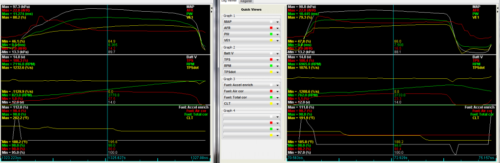 Tune and Log attached. Ignore the AFR target table. It has been modified, but the VE table hasn't. Haven't run VEAL or enabled EGO since.