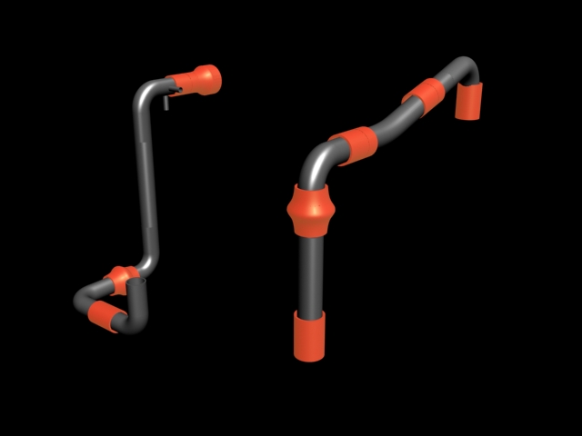 At the compressor outlet I have already shaped the base of the connection to provide a slight downward angle and the point where I will need to put in the bend will be where I go back to horizontal.