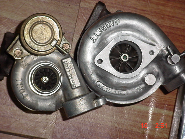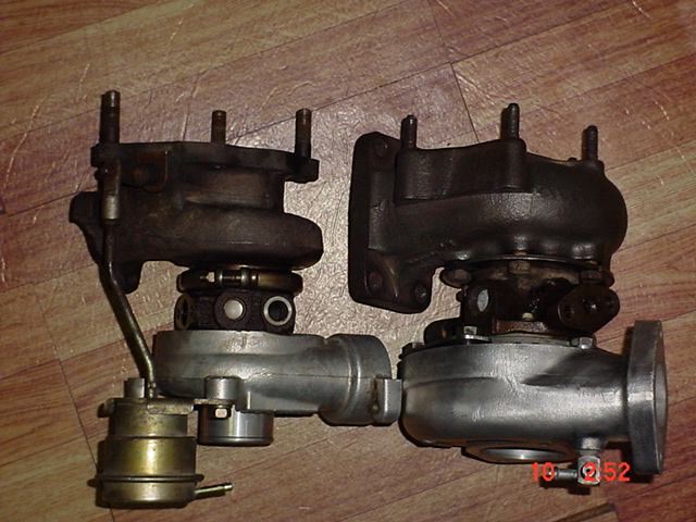The one on the left is the turbo I am currently using, 0.48/0.60 with a super 60 trim wheel, has the nissan housing....obviously.