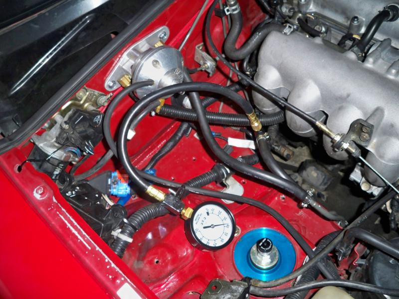So, if it isn't one thing it's another unfortunately. I got my boost gauge in, so i made a panel under my radio out of a piece of sheet aluminum which I think came out pretty good but to make it I had to unplug the wideband and when I went to plug it back in it won't come on, at all... I checked the fuse, it's good, I tapped into the switched power for the stereo and that still works so I know I have power, I tried 2 different ground locations, still nothing, and I took a voltmeter to the end of the harness that plugs into the gauge and had 12.18V between the power and ground so I'm pretty sure the gauge just decided to quit I did get the fuel pump installed yesterday though and took it for a drive. According to this boost gauge I'm only hitting about 4 PSI and then creeping to 5 in the high rpms. However, at rest, as you can see in the pics, it reads about 3 inches of vacuum, should I be assuming that it's reading boost about 1.5 PSI lower than actual? The fuel pressure is hitting ~80 PSI and then tapering up to 100+ in the high rpms (gauge only reads to 100) I'm not sure how that's affecting AFR's (some insight on this would be appreciated). I'll end this post with some pics of my new sexy (IMO) exhaust