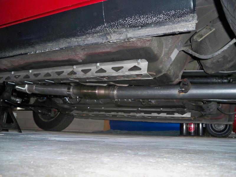 The downpipe hits the frame pretty good right at the last bend by the tranny, so good that I can't get all the bolts started in it because of it.