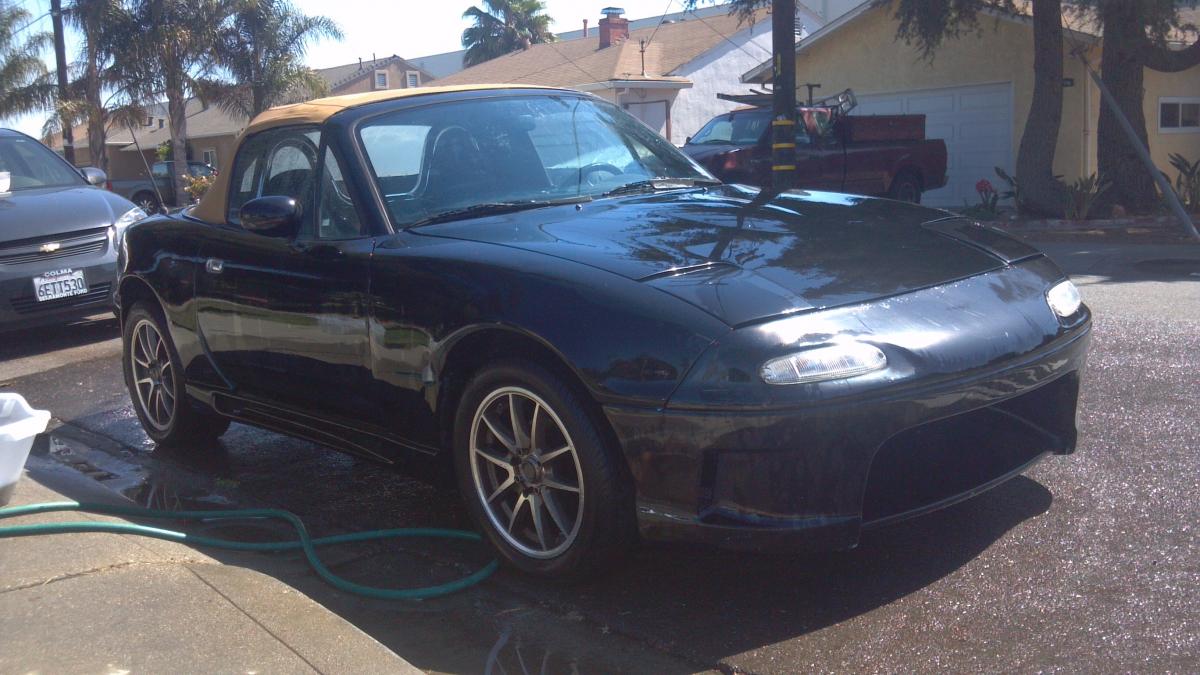 fixed the dents replaced the roof (it had more holes than a brothel), bought a kit (only because it was cheaper than buying new bumpers), put some gas in it and was off!!!!!!!! At the time I was working for earl Schieb so i figured "why not just paint it, wont cost me more than $50. So i did. now the car was looking pretty ok and I had to admit is was fun to drive. Im 6 ft 220 lbs, so although fun, not really comfortable. I never really drove it. i let a friend drive it for almost a year, then she broke it. With the motor not passing smog I decided to pull it out and put another one in....here is where it gets nuts.