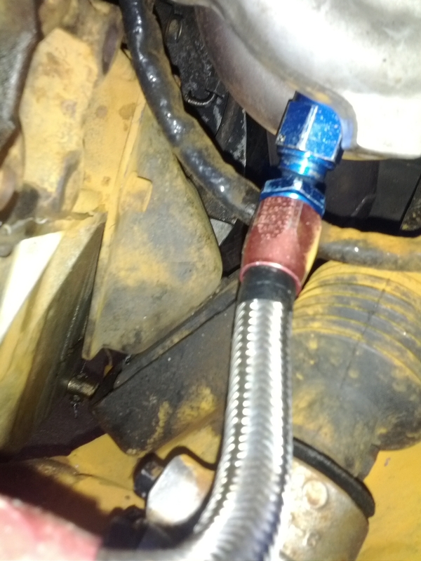 Just about to order a couple new hose ends and fittings to drill and tap my pan for the return, and I'm thinking a 45deg -10AN to 1/2NPT fitting for the pan, a straight hose end to attach to that, and then a 30deg(?) hose end to attach to the turbo drain fitting.
