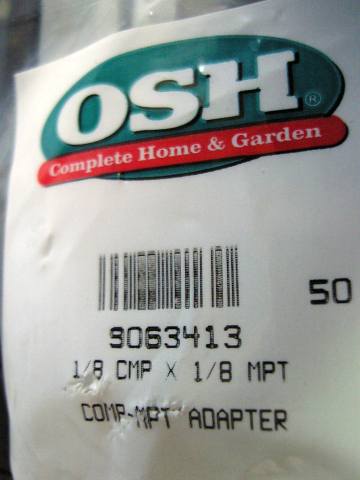 Went to plumbing store, bought 1/8 MPT - 1/8 compression fitting.