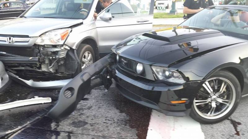 In case your wondering why my drivers side fender is blue, It is because mustangs can't turn. Some kid Let his buddy drive his new mustang. Buddy tries to take a turn way to fast and plows into the CRV sitting next to me at a red light.