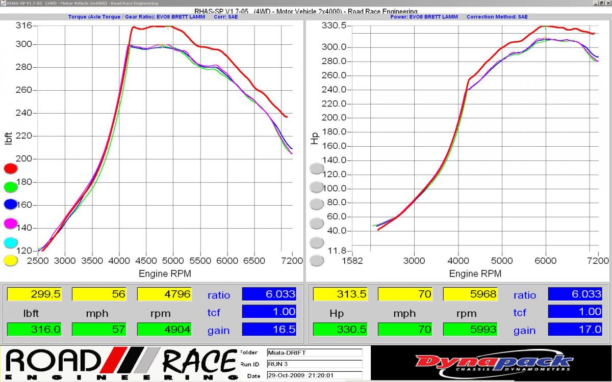 If the timing can bring the boost in 500rpm sooner and I can get this bitch up to 350-360 on this dyno(thats 50-60 more tq and hp) I will be totally happy..