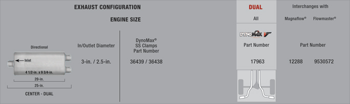 The popular quiet 3" muffler seems to be the 22x5x11 Magnaflow, but I like the flapper idea. All the Dynomax VT Mufflers are of the smaller variety except for the 17963: