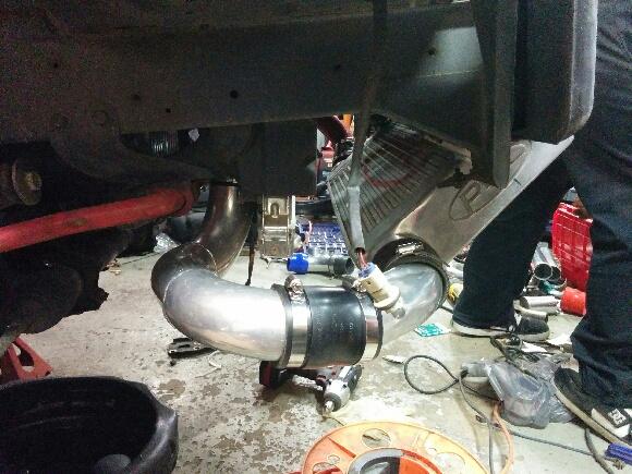 Looks like one picture has it going into the fender area, the other is where all other kits run, interfering with where A/C would be
