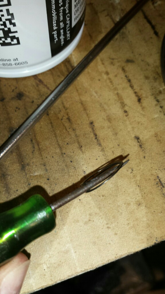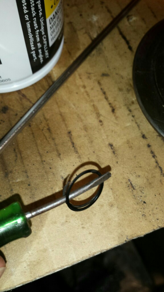 2) Push it into the bore using a pic, pressing on the inner-most arc of the ring.