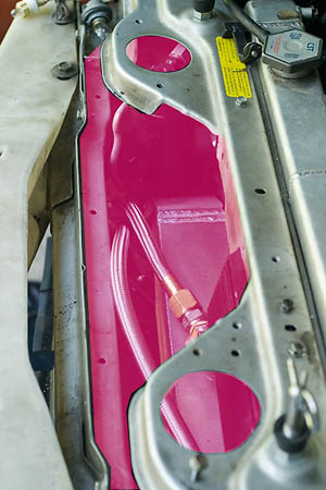 You can move the horn and build around the latch (like I did for the airbag sensor) - the latch was in the way of the oil cooler and lines. Horn is under my driver's side headlight. When I go to the bigger IC, I'll probably have change this to reposition the cooler- sealing off the entire area. Even then a ducting could be fab'd to channel some air from that source to an airbox.