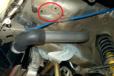 Just went out and looked at the area under the driver's side headlight. I can't see any reason not to drill a 3" hole through that sheet metal. It's on the outside of the frame rail and definitely a good source of outside air for the turbo to pull from. Anybody know what the air pressure looks like in the fender well/nose area? I'm thinking that static would be preferred as not to create high pressure on the engine side of the rad. Thoughts?