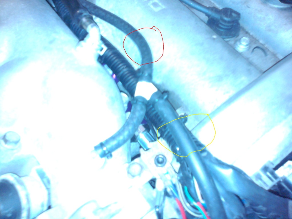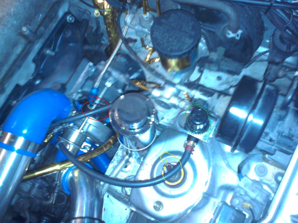 The red line connects straight to the boost gauge, the yellow one goes to the BOV nipple.