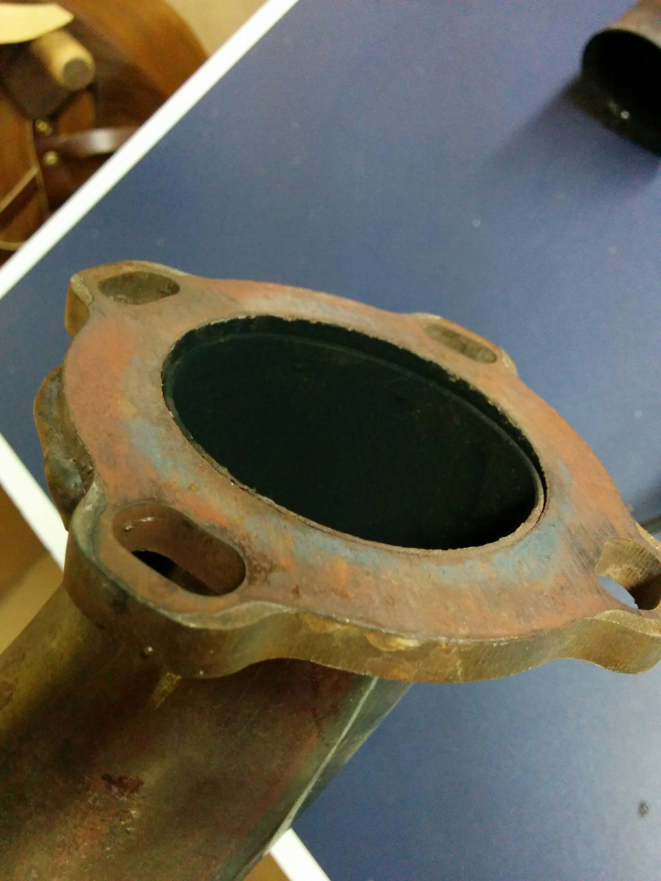If it helps, here is a photo of where the downpipe WOULD connect to the elbow if they matched