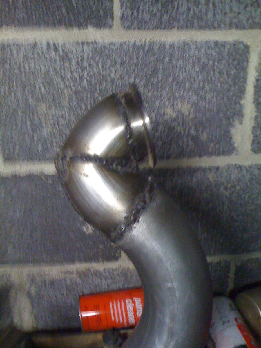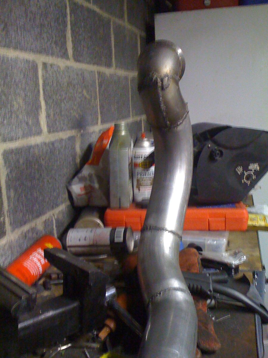 The hot side pipe consists of more or less 4 90deg bends. One is a little less. It's a perfect fit and smooth all the way through.
