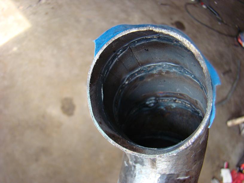 I made a homemade grinder with steel wire and welded on screws, something like that will make sure all those little steel spatters are cleaned off the inside of the piping and wont eventually get sucked through your engine :-)