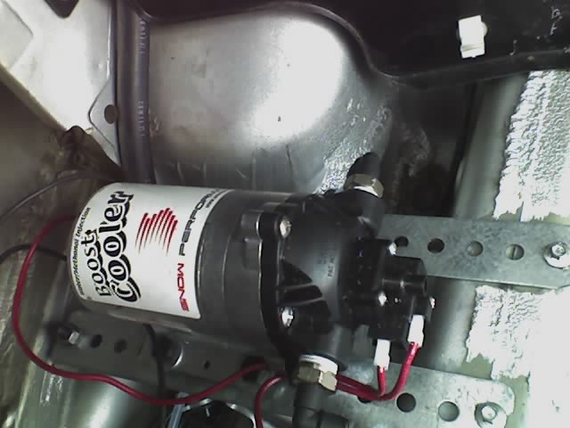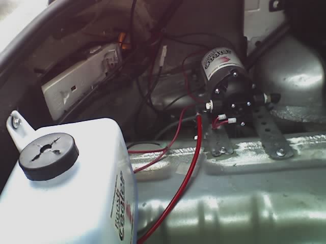 In an out building behind the garage. of course. I have a tapped 1 gallon gas can supplied 2 qaurt resevior 15-16 ft of 1/4 inch nylon tubbing one quickdisconect tee, a manual toggle switch to conrol on off when pressure testing other things such as fpr without running the pump, and the supplied 176 cc jet and a pressure switch adjustable between 0-30 psi along with spray nozzle and needed tap. This was my base setup as i quickly became unhappy with how long the 2 qaurt tank lasted i have since added a manual toggle to run in conjunction with my boost gauge light so i can bench test the pump while adjusting Injection pressure and a interupt to have the light on my boost gauge on or, have it come on when the pump grounds out via a parralel hot wire running to the common ground of the pressure switch with this i can set and test the pressure switch onset more easily since my boost gauge will light up when the circuit is complete and without the manual pump swithch being on i dont have to disconnect the fitting to avoid spraying into the car at idle or while sitting in the garage and tunning. it is realy pretty simple