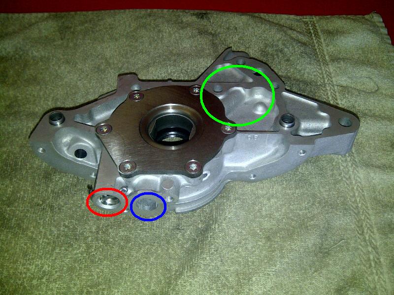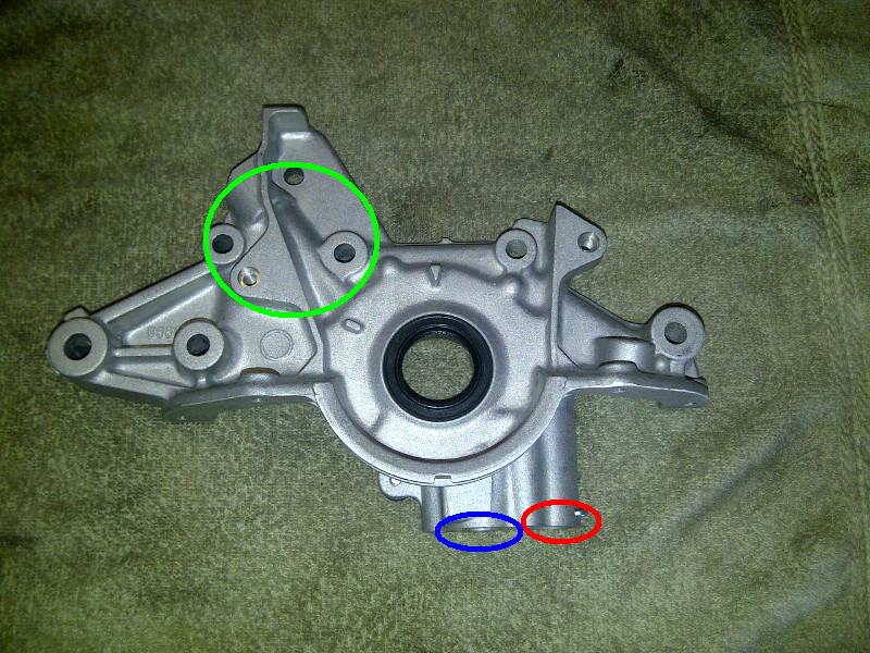 The oil pickup is circled in Blue.