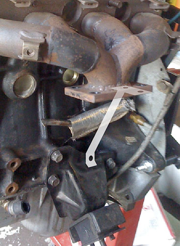 I think the brace needs to run from the turbo flange down to the block, or the motor mount. Both dvcn and I have SSAutochrome manifolds braces that way and they're surviving. I'm using some round mild steel rod. It does a nice job of supporting while having some give for expansion/contraction. I originally went with square tube, but it eventually tore. So I sectioning the square and welded up some solid rod in the center.