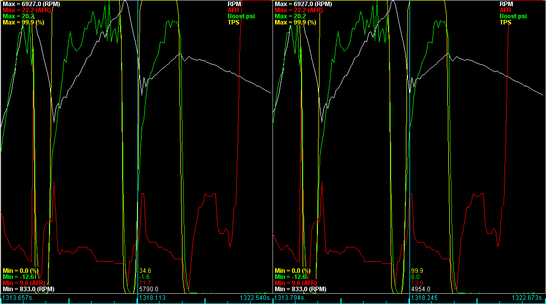 Interesting to me is: at 5000 rpm, in 3rd or 4th, how long does it take coming off 0% tps from full throttle to full boost?