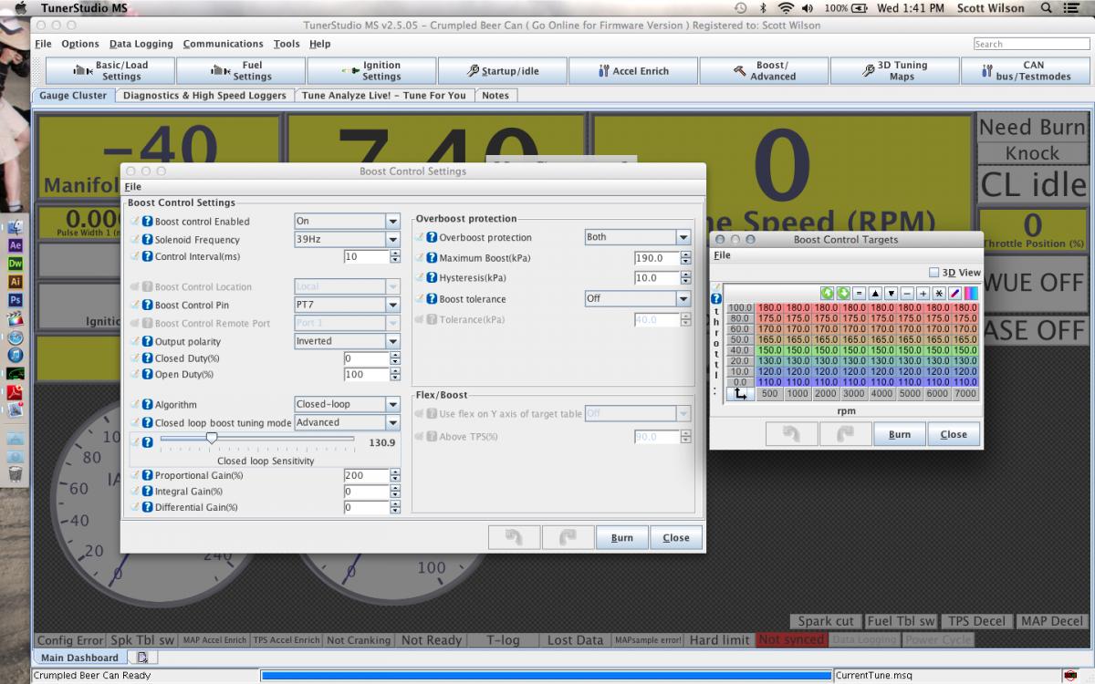 Yesterday I hooked up the DIY EBC and even with it in the fully open position I hit over boost. WTH haha. Im thinking about builing a diy boost boost controller that allows for more air to flow through it so I have more resolution. I am also preety sure my boost gauge is off a little cause when I hit overboost it says 16 psi but in MS its at 13 psi so I am just gonna keep playing with it. I did a vd yesterday with my friend and It said Im at 225hp and 203ft/lbs at 8psi. I know that probably off but I been playing with my spark map a lot and doing a lot of logs and according to my *** the power feels good. I dont have a boost controller hooked up currently but I am running the wastegate right before the throttle body and that has help tremendously with the fluctuations. Hardly ever over shoots but as soon as I put on the boost t it will overshoot then settle or if I add the EBC it will spike even with the valve fully open.
