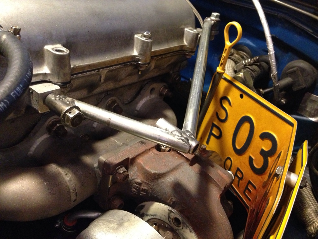 "Finished" version. Still need to do the final welding. Unfortunately that means welding in the engine bay and I'm a little scared of that. I have a drop cloth that should work. It's heavy duty canvas, hopefully it won't catch fire. I'm just going to tack it, then finish weld off the car.