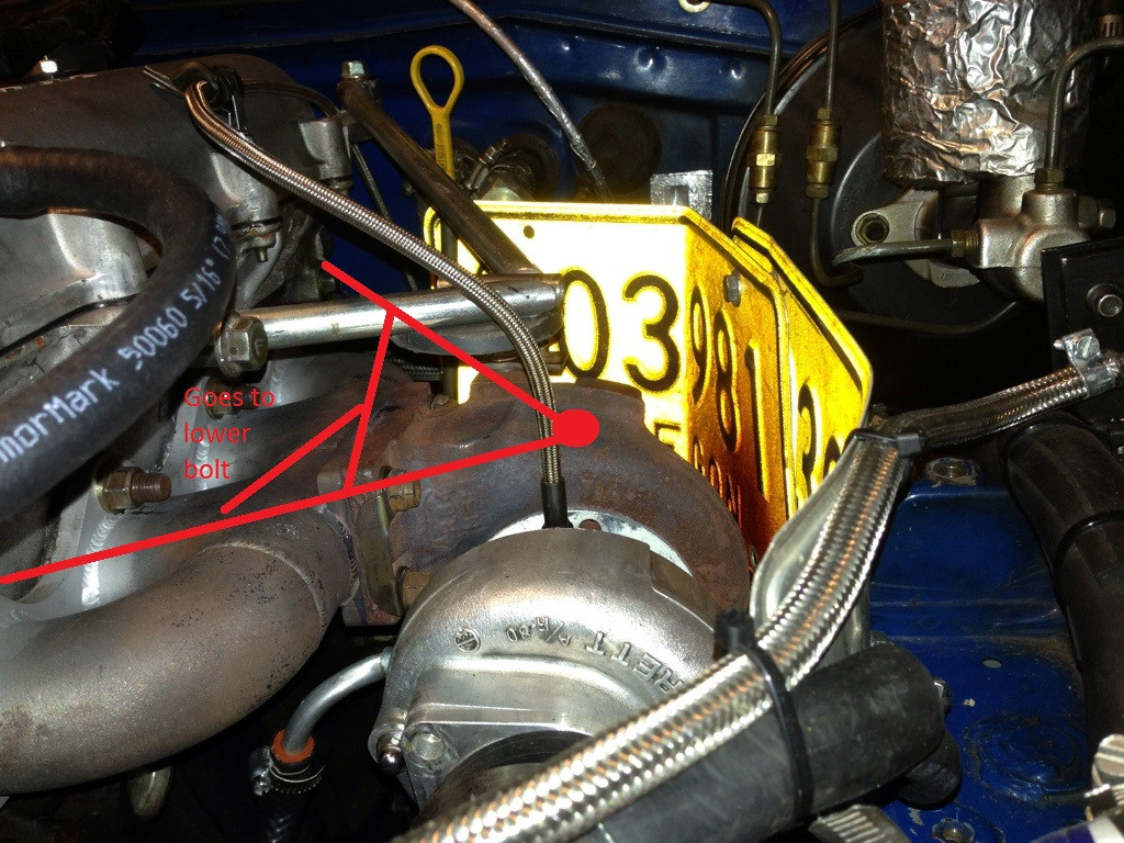 2 to go to turbo and 1 as a diagonal upward brace to a cross bar. Should give some upward strength and decrease vibration with three points of contact to big motor parts and some Mass of its own.
