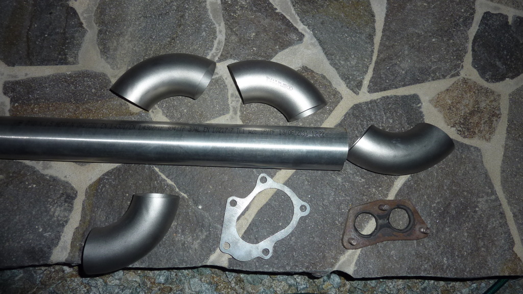 I found some 70 x 1.5 mm ss elbows and pipe so I can start to fab the cutout/downpipe.