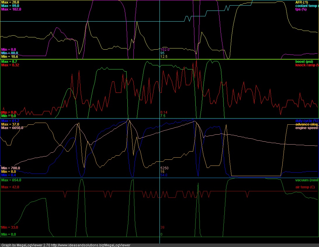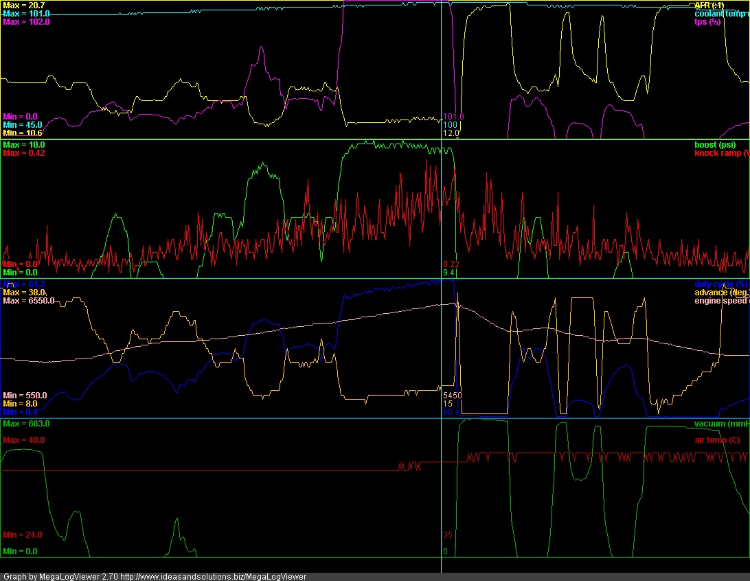 Here's some Hydra logs of my MSM. I have an AEM intake and a BEGI intercooler.