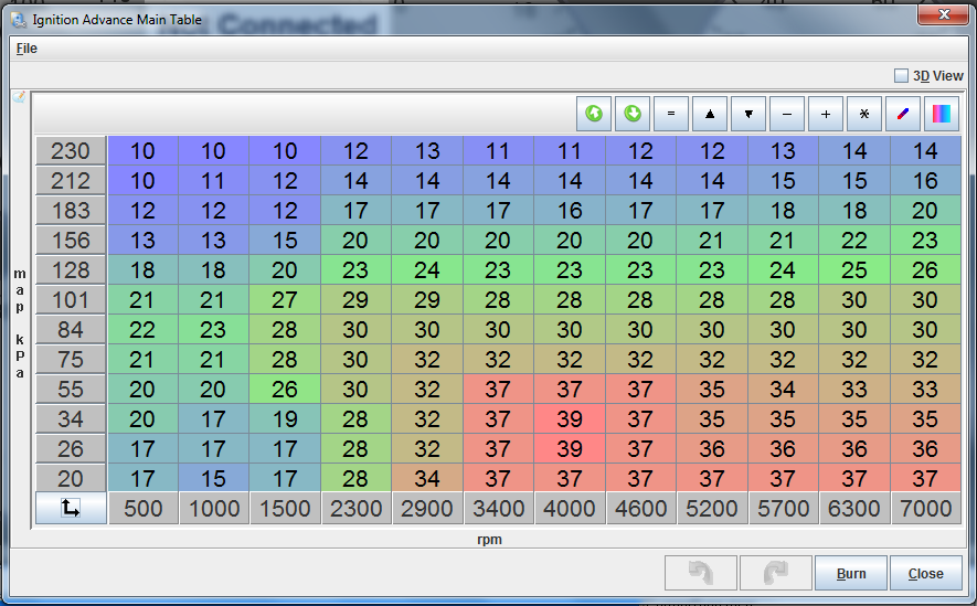 I'm wondering if my tune has too much retard in the boosted cells, thereby making more heat than normal in the turbo? Running 8.4cr Supertechs and Crower rods, 1.8na stock cams, pump 93, boundary non-vvt oil pump assembly. About 14-15psi max. I'll attach a timing map.