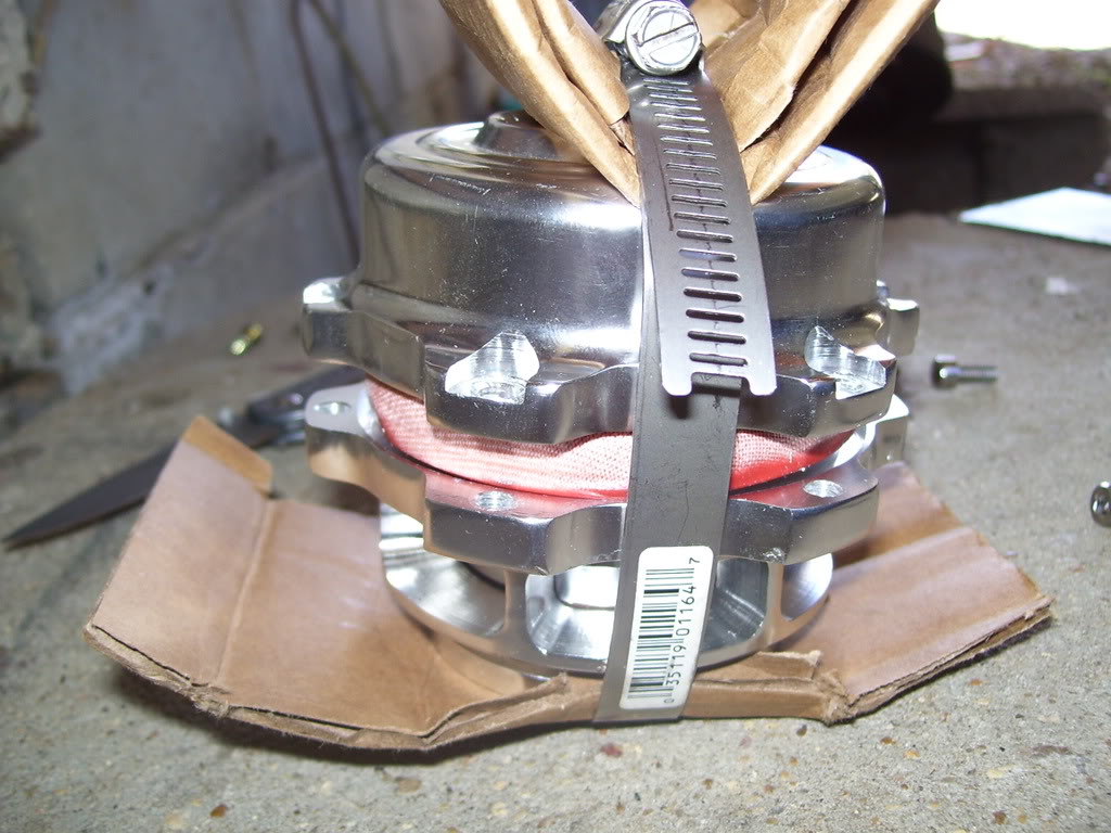 I didn't have a vise, so I found a big hose clamp and some cardboard...