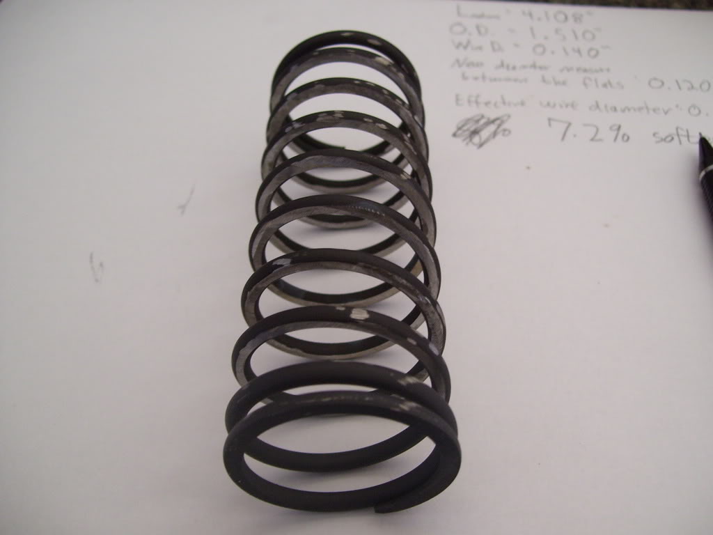 When you install the spring, it gets compressed to about 2.00" long. When the valve opens, it gets compressed to about 1.50" long. Let's ASSume that the k value for my stock spring is 42 lbs/in. This is only an approximation, but a few different derivations based on other info suggest this number is correct.