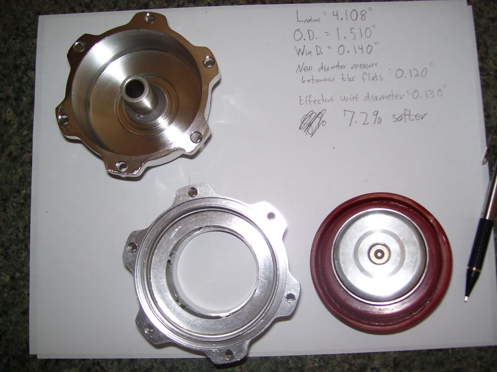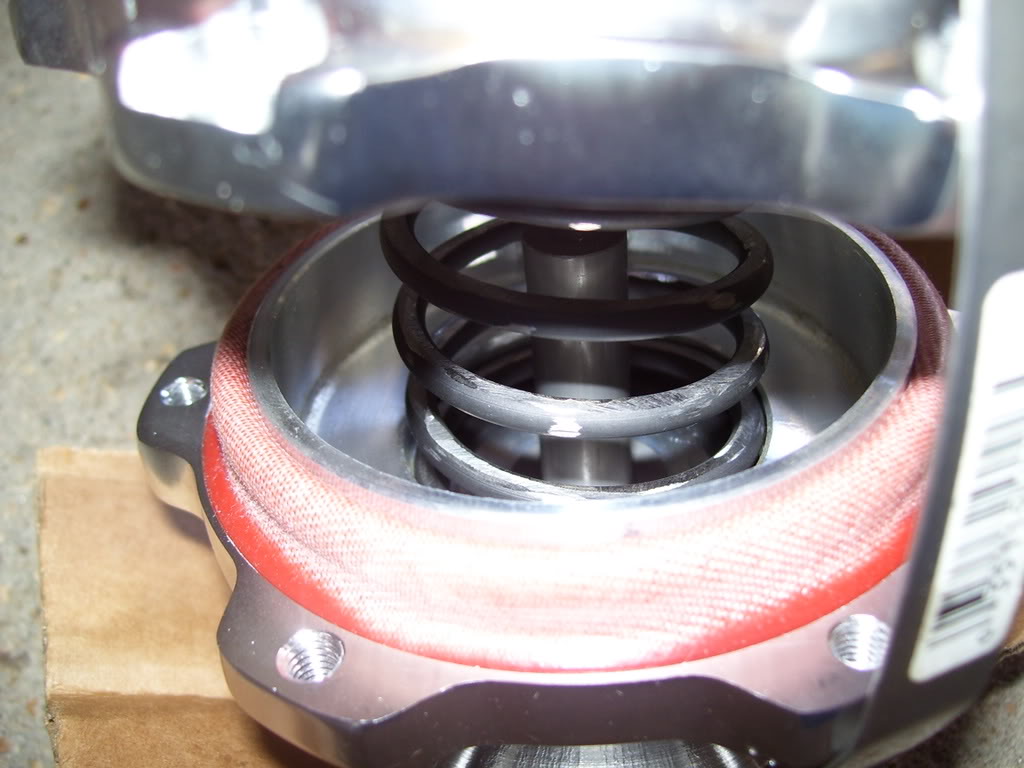 Now my BOV's spring was too stiff. Thing didn't want to open and I was getting compressor surge. So I needed a softer spring. Well, reading up everybody either buys a new one for $$$ or cuts their old one. I had a feeling cutting it wasn't the "right" way to do it. It's not.