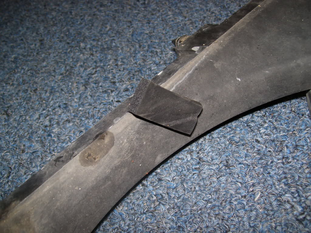 Hmm, a piece of weather stripping stuck to the fan shroud with a curved indention in it.. Wonder how that indention got there...