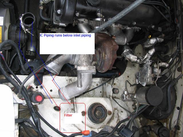 1> 45 degree silicon bend and position the filter behind my headlight naca duct (see next post w/ drawing)