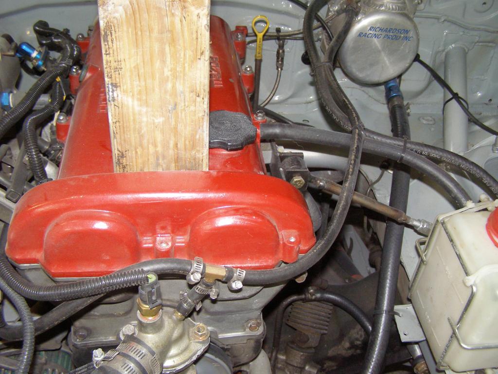 I know it is kind of hard to see in the picture, but my mixing manifold is turned 180 degrees, the large line from the swirl pot connects to the mixing manifold. The small line coming of the swirl pot has a t-fitting that connects to the top of the current t stat housing, then continues to plug in to the back of the head.