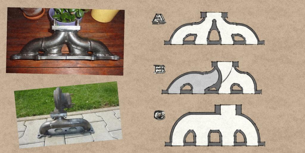 I usually make axial logs now as the flow characteristics seem to be better and turbo positioning is pretty decent. I made a variation of the axial flow manifold once where the turbo flange was opposite port 2. The flow to the collector area was split horizontally as opposed to vertically. It was real difficult to make and the center manifold stud had to be extended to the width of the manifold. As a casting it could make sense but not definitely not fabricating.