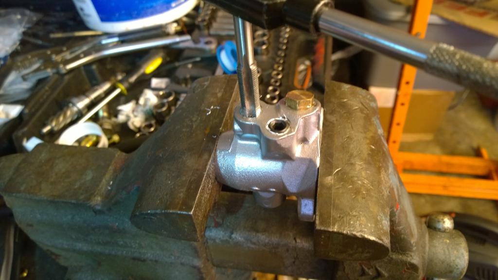 cracked the housing, but is all good..i figured i could tap the hole after i tried forcing the nut in..