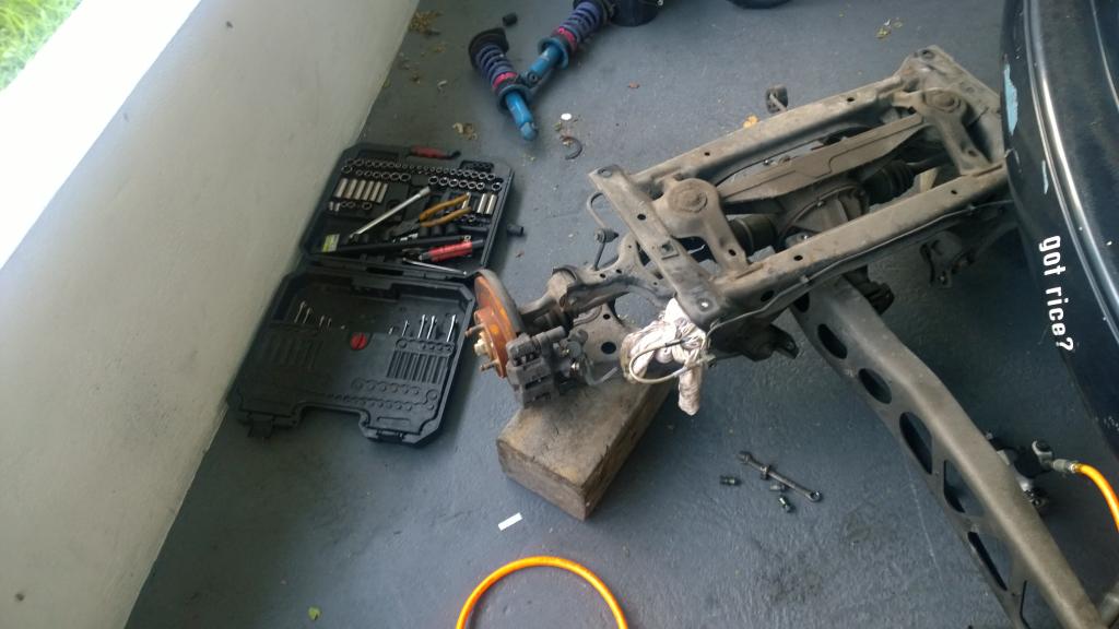 took apart the shitty suspension..def need new suspension..shocks aren't blown..amazingly enough...so they go back for now.