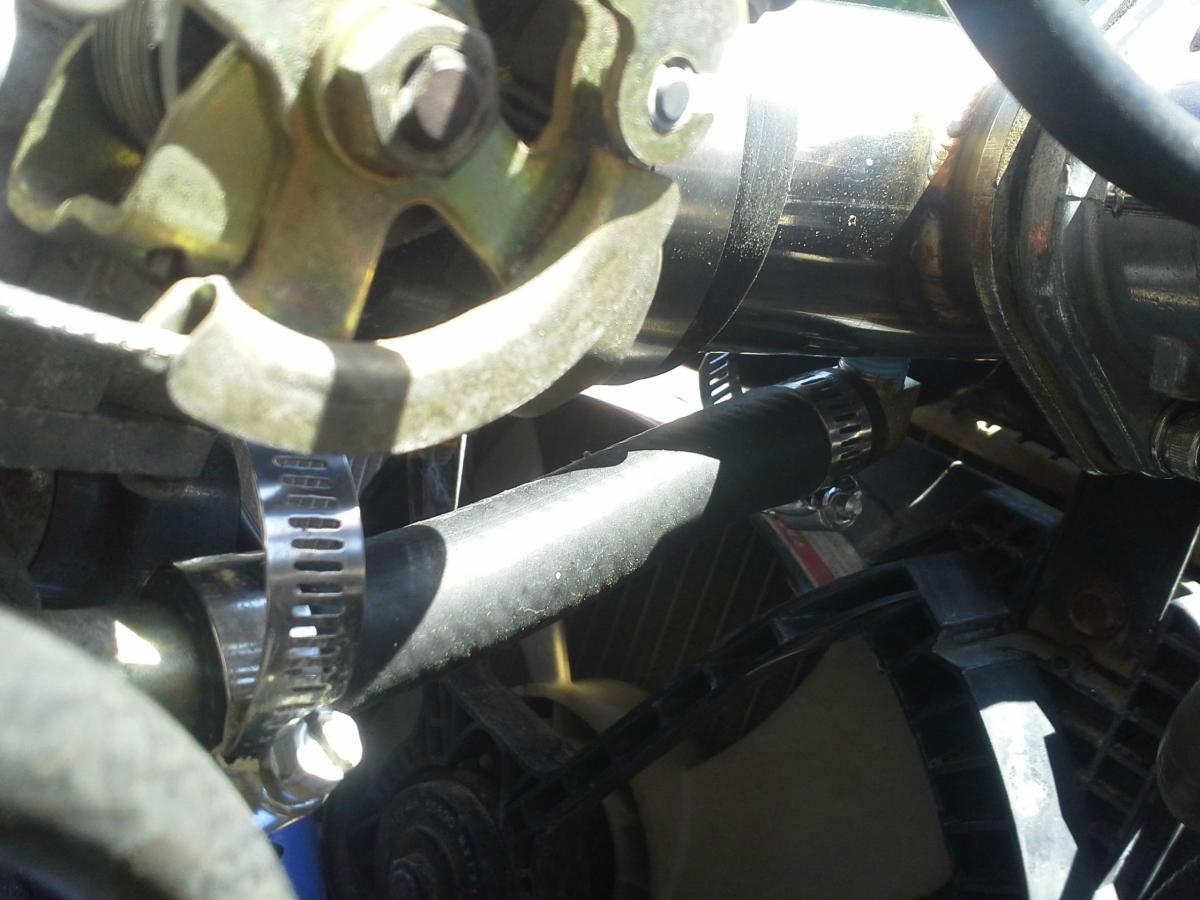 The stock hose goes to the side of the crossover tube to get air for the IASC valve. This is what I made, a 90 deg brass fitting with a hose barb end and used a piece of heater hose to make the connection.