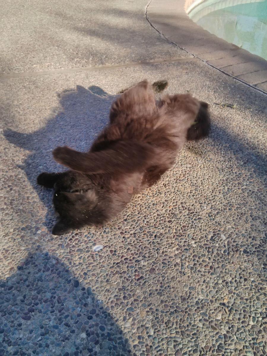 here's a picture of my own cat, she loves to roll around in dirt.