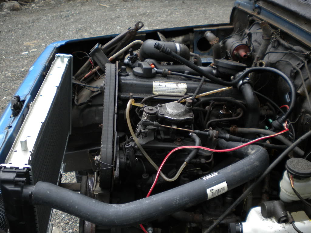 I pulled the motor and tranny today, put in the clutch, oil feed line, removed the EGR pipe and capped the intake manifold, moved water neck for coolant reroute, removed oil pan and TIG'D in a bung for the drain line. I put it all back in the car and proceeded to install the turbo with oil feed and return lines aswell as the cooling lines are finished up.
